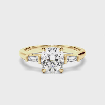 Cushion Cut Diamond Trilogy Engagement Ring with Baguette Sides