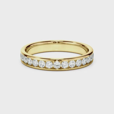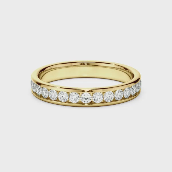 This stunning custom-made eternity wedding ring features a full band of round brilliant cut diamonds set on an 18ct gold or platinum band. Exuding fluidity in its line work, and boasting an elegant silhouette, as with all the pieces in our Bespoke Collection, this piece is made especially for you.