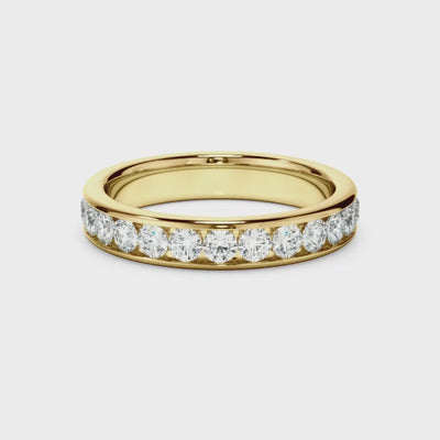 This stunning custom-made eternity wedding ring features a full band of round brilliant cut diamonds set on an 18ct gold or platinum band. Exuding fluidity in its line work, and boasting an elegant silhouette, as with all the pieces in our Bespoke Collection, this piece is made especially for you.