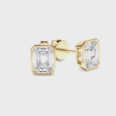 Emerald Cut Diamond Bezel Set Stud Earrings
