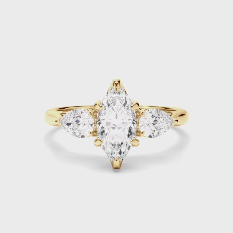Marquise Cut Diamond Trilogy Engagement Ring with Pear Sides