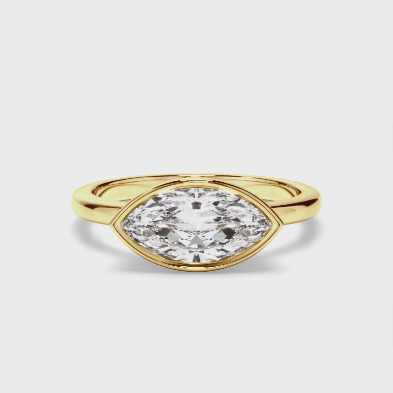 Marquise Cut Diamond Bezel East West Solitaire Engagement Ring
