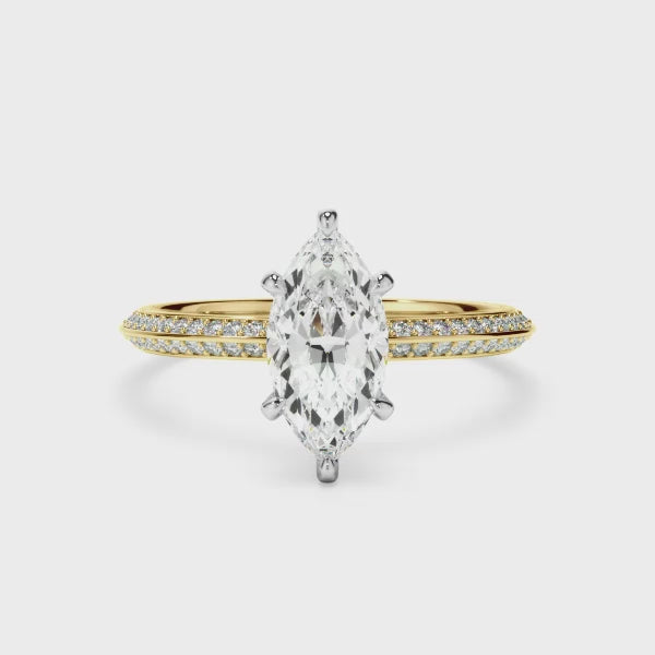 Marquise Cut Diamond Knife Edge Engagement Ring With Diamond Pave Sides