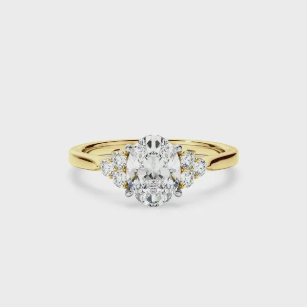 Oval Cut Diamond Engagement Ring With Diamond Cluster Sides