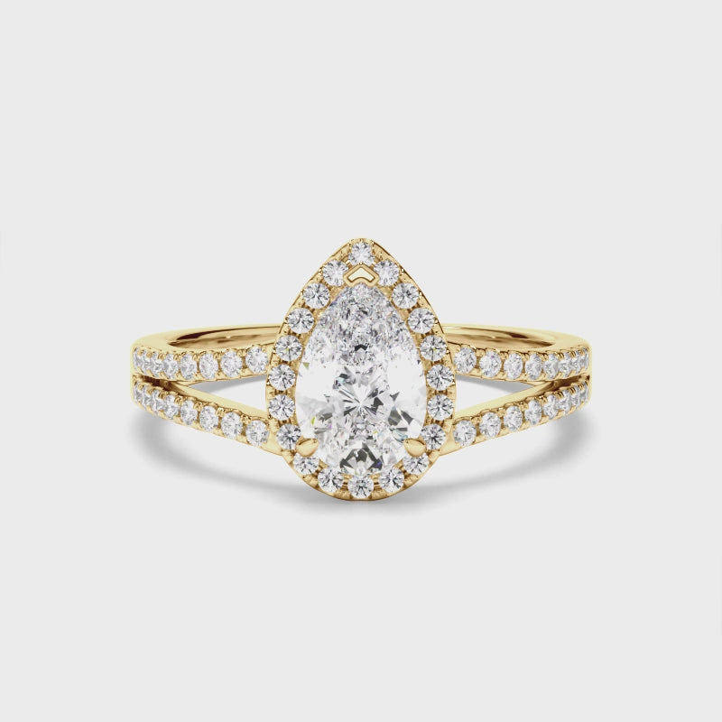 Pear Cut Diamond Halo Engagement Ring with Pave Sides