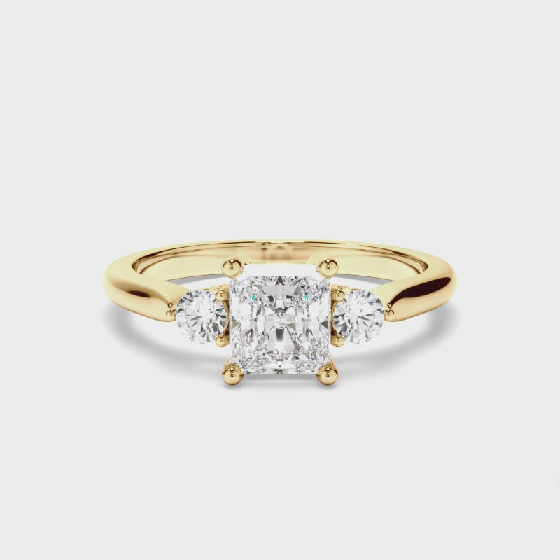 Radiant Cut Diamond Trilogy Engagement Ring with Round Brilliant Sides