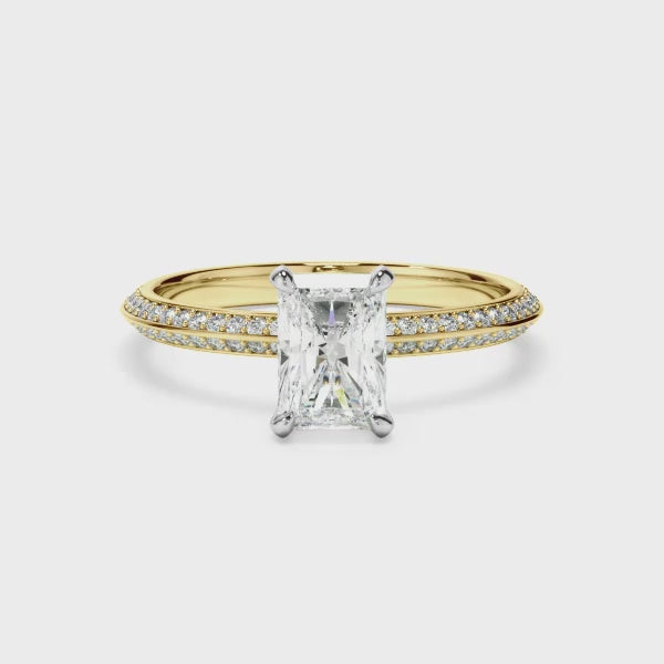 Radiant Cut Diamond Knife Edge Engagement Ring With Diamond Pave Sides