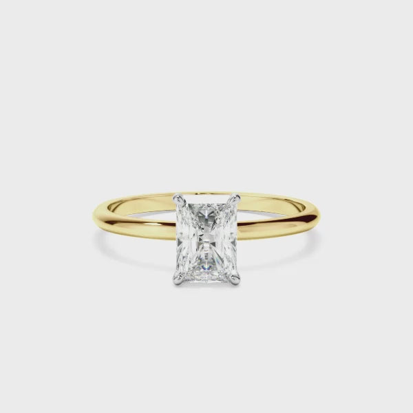 This timeless custom-made engagement ring, made with your choice of diamond centre stone, features a radiant cut diamond with 4-claw solitaire setting. Exuding fluidity in its line work, and boasting an elegant silhouette, as with all the pieces in our Bespoke Collection, this piece is made especially for you.