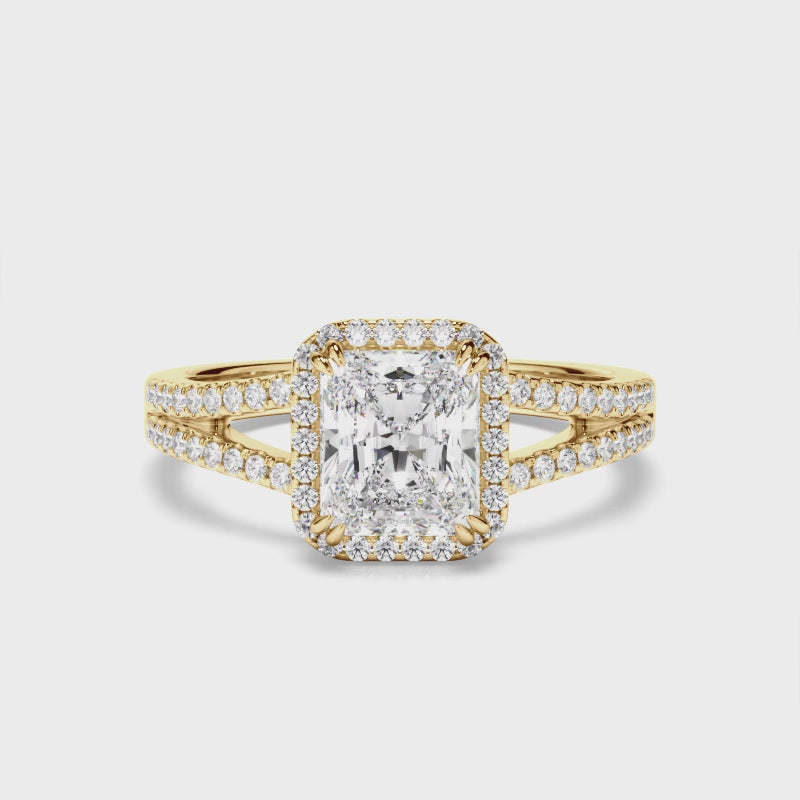 Radiant Cut Diamond Halo Engagement Ring with Pave Sides