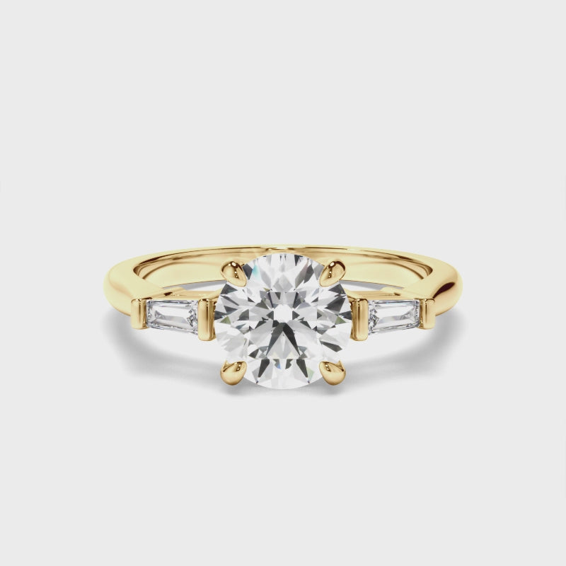 Round Brilliant Cut Diamond Trilogy Engagement Ring with Baguette Sides