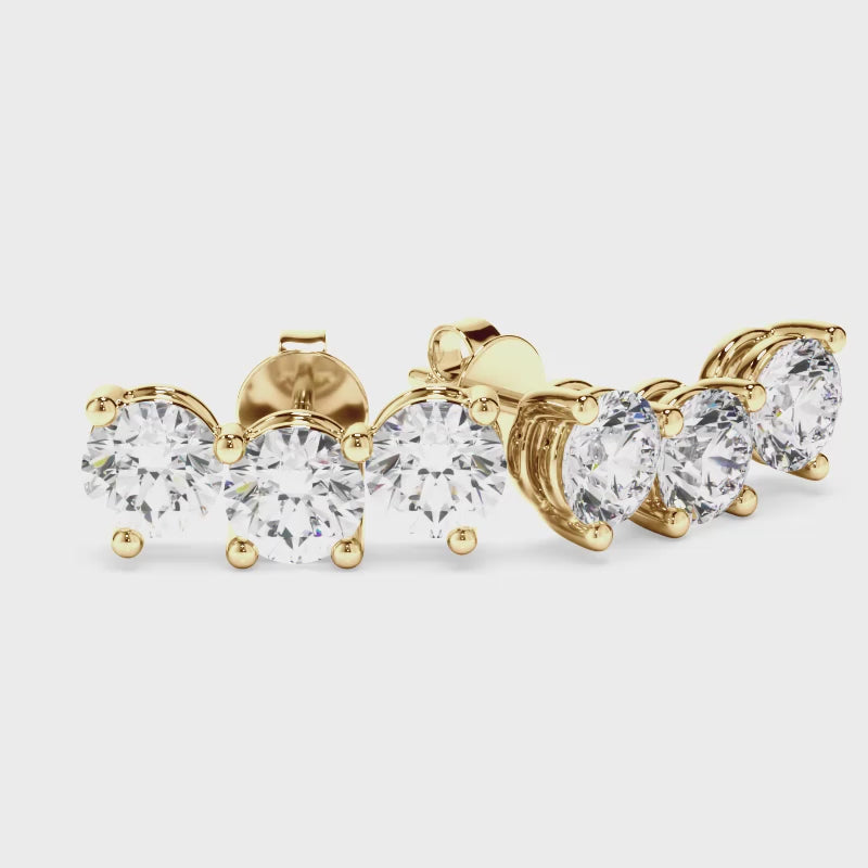 These elegant round brilliant cut diamond stud earrings feature a 3-stone setting, totalling 1.50ct over each ear, and finished with a butterfly post. Exuding fluidity in its line work, and boasting an elegant silhouette, as with all the pieces in our Bespoke Collection, this piece is made especially for you.