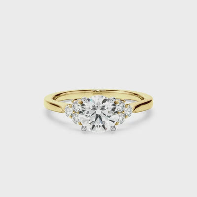 Round Brilliant Cut Diamond Engagement Ring With Diamond Cluster Sides