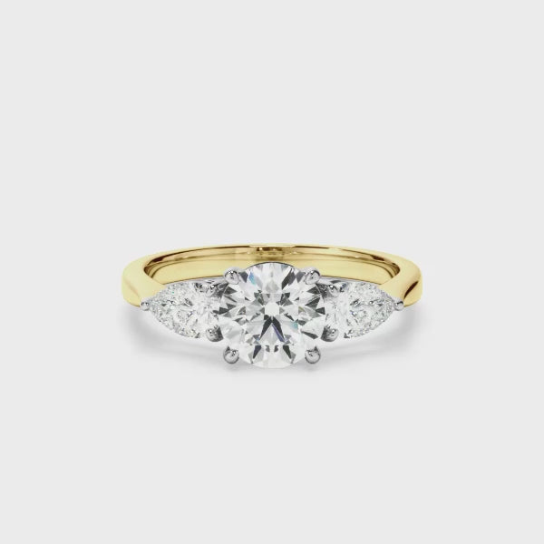 Round Brilliant Cut Diamond Engagement Ring With Pear Cut Diamond Sides