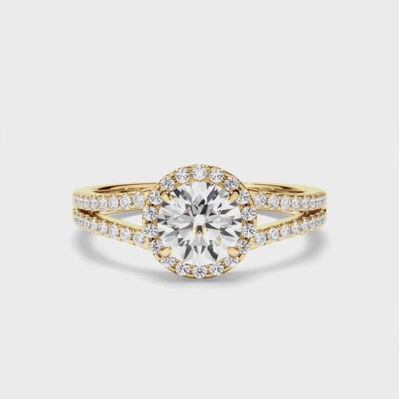 Round Brilliant Cut Diamond Halo Engagement Ring with Pave Sides