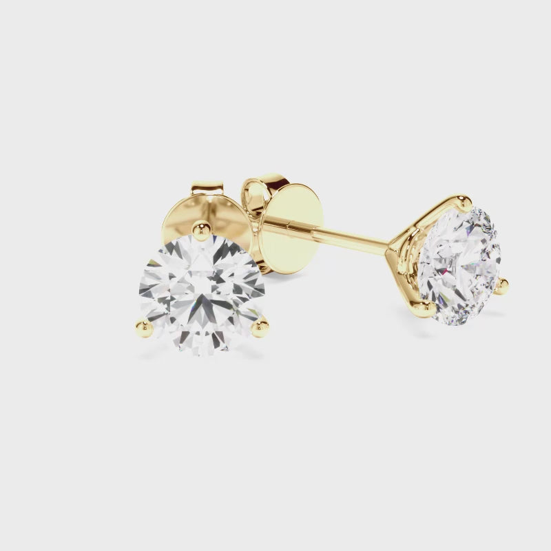These stunning round brilliant cut diamond stud earrings, made with your choice of diamond centre stone, feature a 3-claw setting and butterfly post. Exuding fluidity in its line work, and boasting an elegant silhouette, as with all the pieces in our Bespoke Collection, this piece is made especially for you. Pictured here with a 1.00ct Round Brilliant Cut Diamond for each ear, the final price is determined following your centre stone selection.
