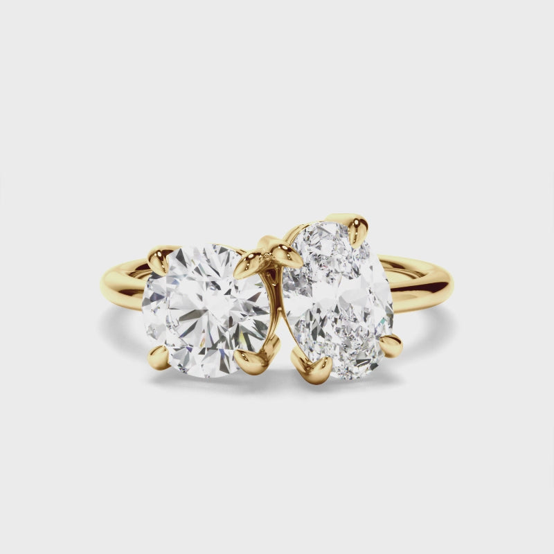 Round Brilliant & Oval Cut Diamond Toi et Moi Engagement Ring